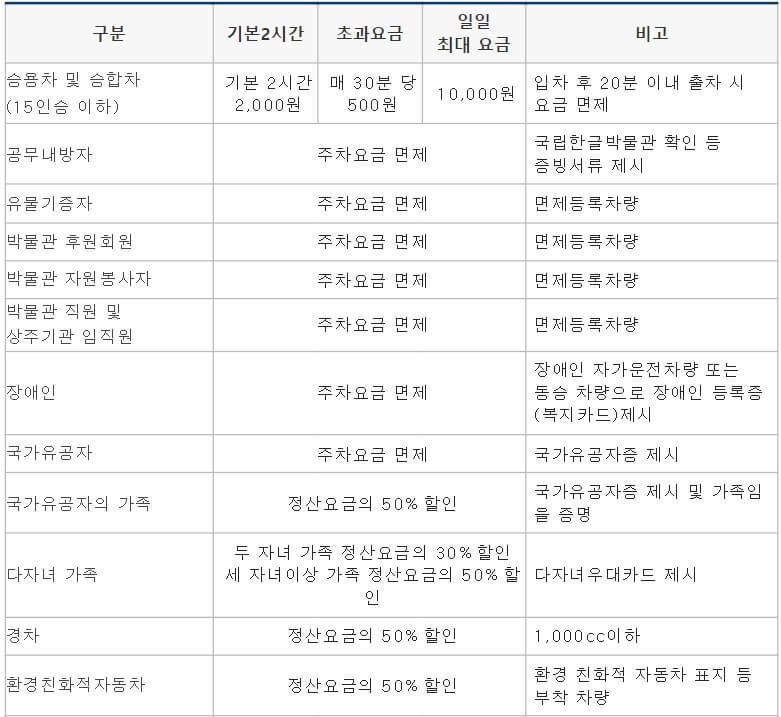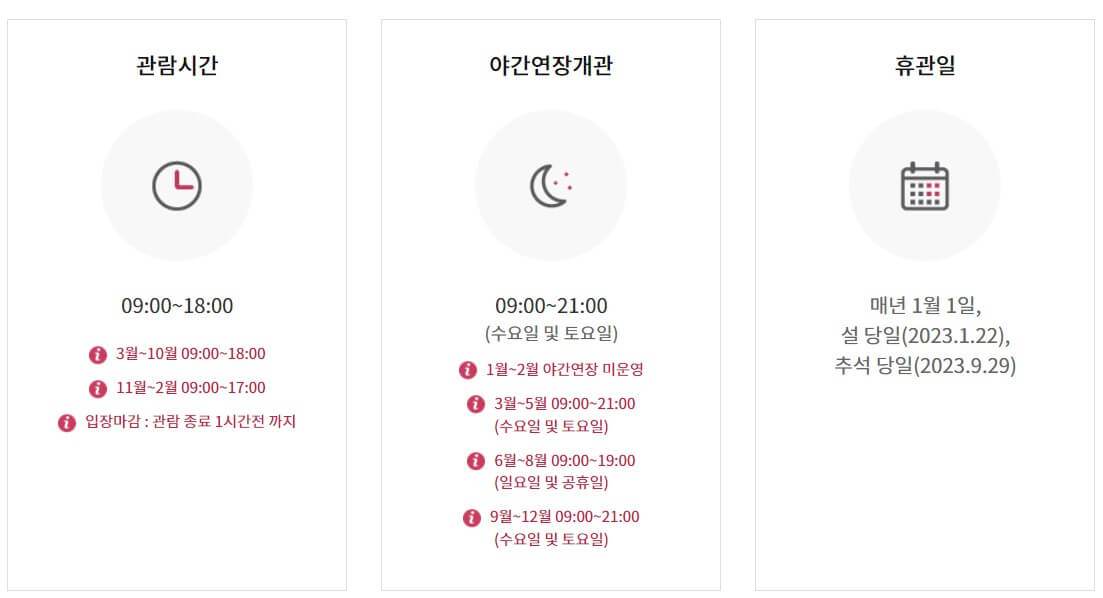 - 휴관일 : 1월 1일, 설날 당일, 추석 당일