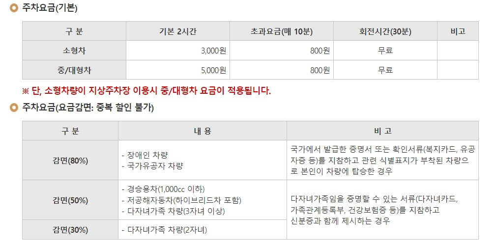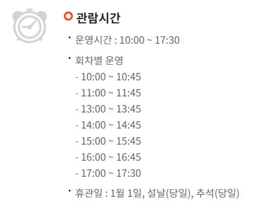 - 휴관일 : 새해첫날, 설날 당일, 추석 당일