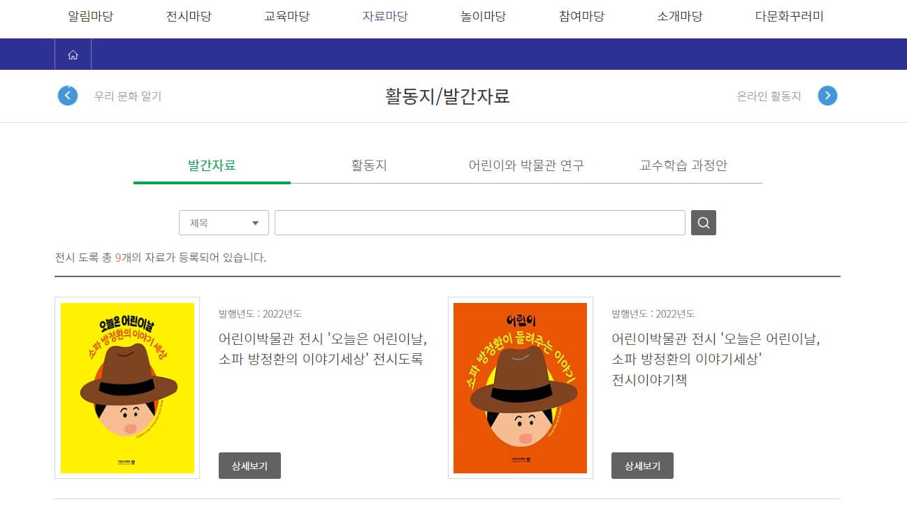 ☞ 어린이박물관 홈 -> 자료마당 -> 활동지/발간자료