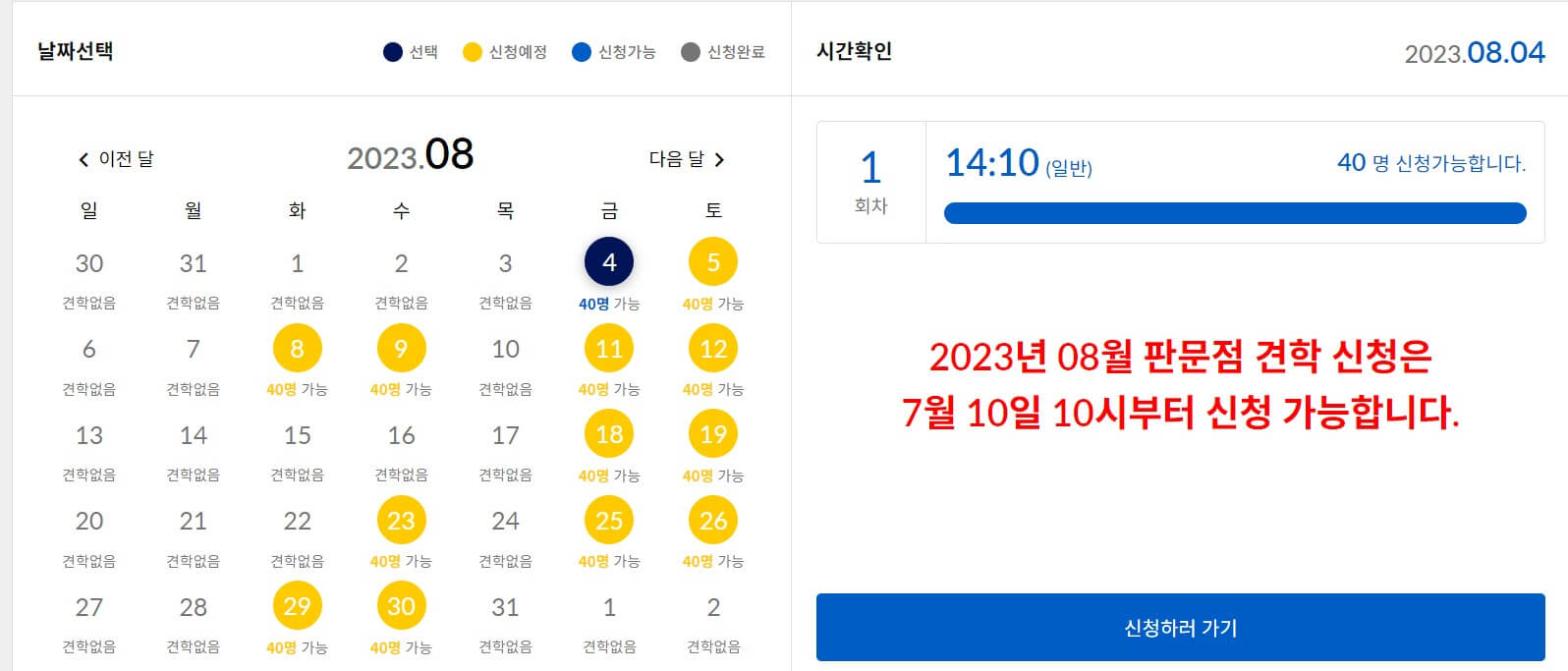 - 견학신청 및 마감시간