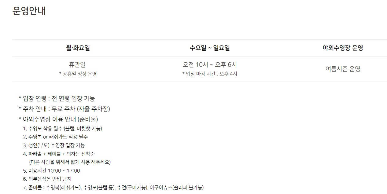 - 운영 시간 및 이용 요금