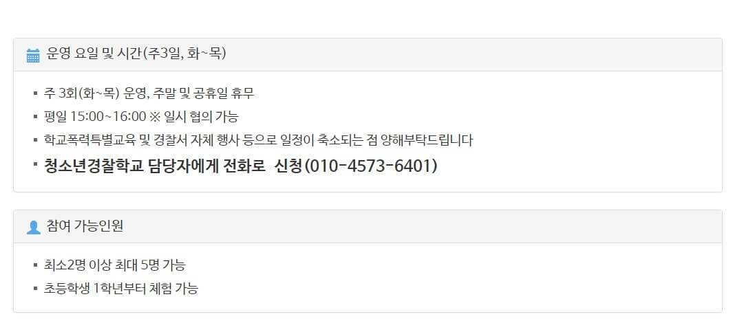 경기도 뿐만 아니라 전국에 청소년경찰학교가 있으므로 가까운 곳을 검색해서 가보기를 추천