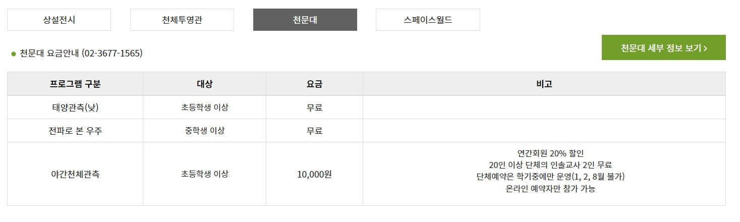 - 국내 최초 어린이 천문우주과학 체험학습 기관으로, 수도권에서 가장 많은 별을 볼 수 있는 곳