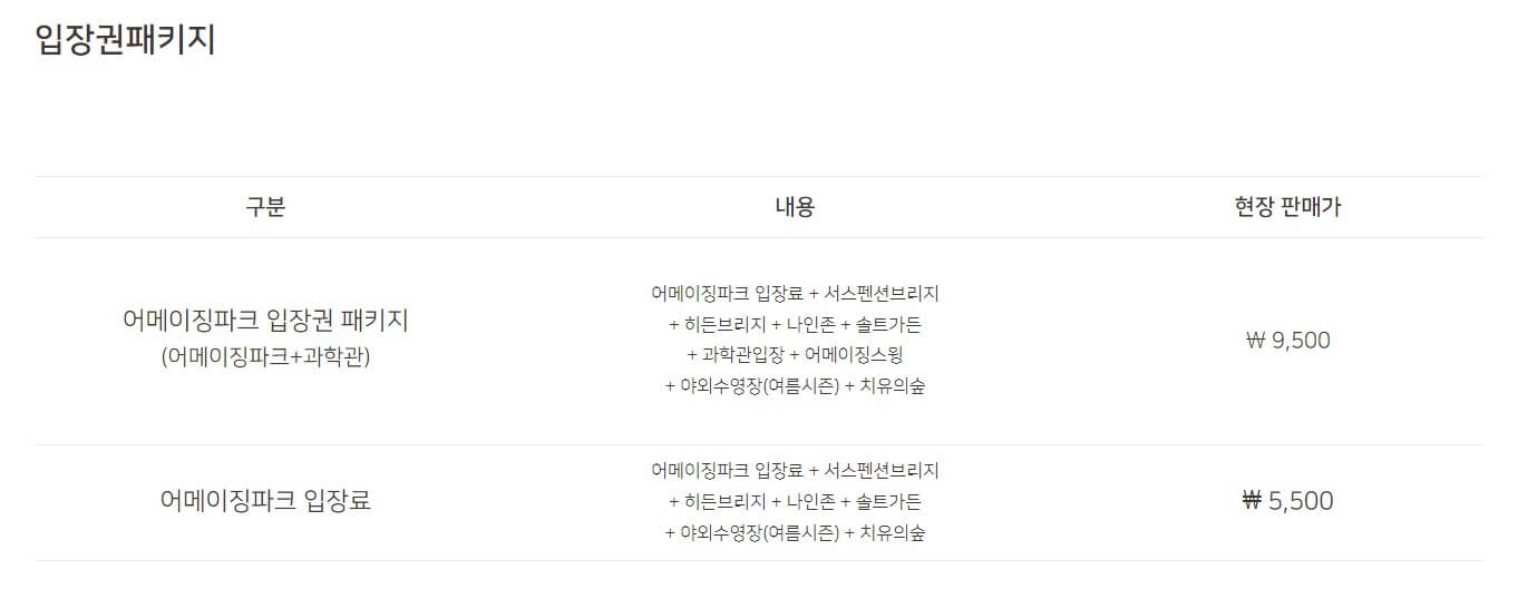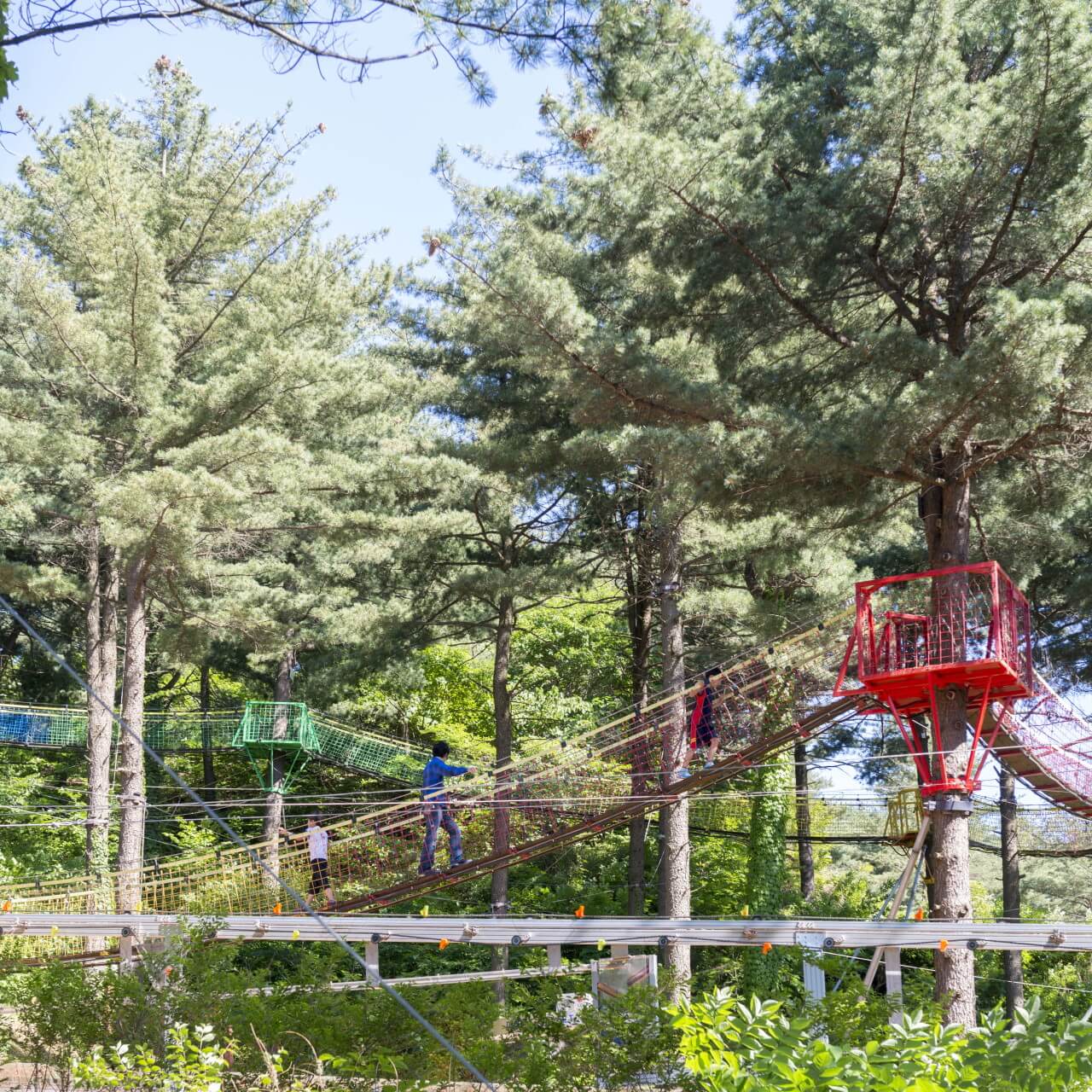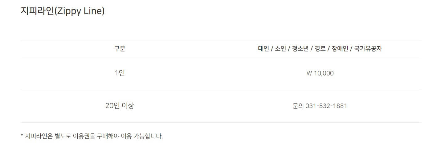 여름 시즌에는 야외 수영장도 운영하며 집라인, 숲속 브리지, 치유의 숲 등도 함께 이용할 수 있다