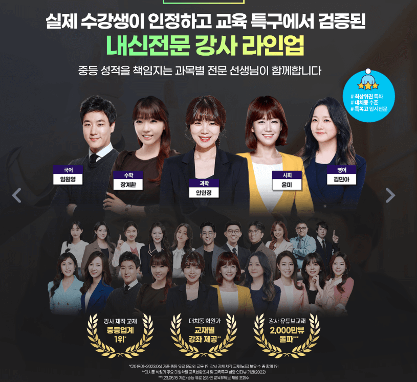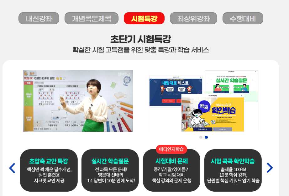 ■ 내신 맞춤 강의 - 중등업계 유일, 전 과목 모든 출판사 강의 제공