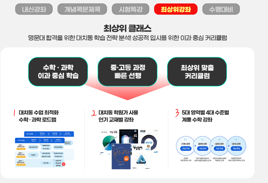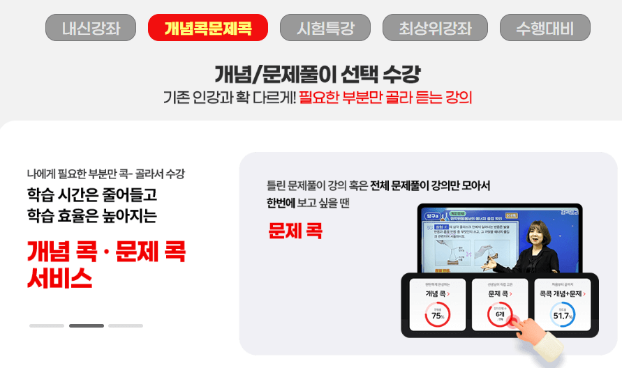 그 외에 개념+유형, 일품수학, 에이급, 블랙라벨 등의 유명한 강의를 들을 수 있어