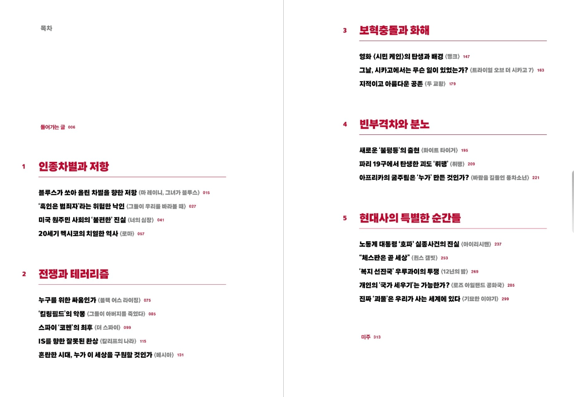 고대 문명부터 사회 문화, 전쟁과 개척, 종교, 인물까지 총 다섯 개의 주제에서 스무 가지 세계사 영화를 소개한다