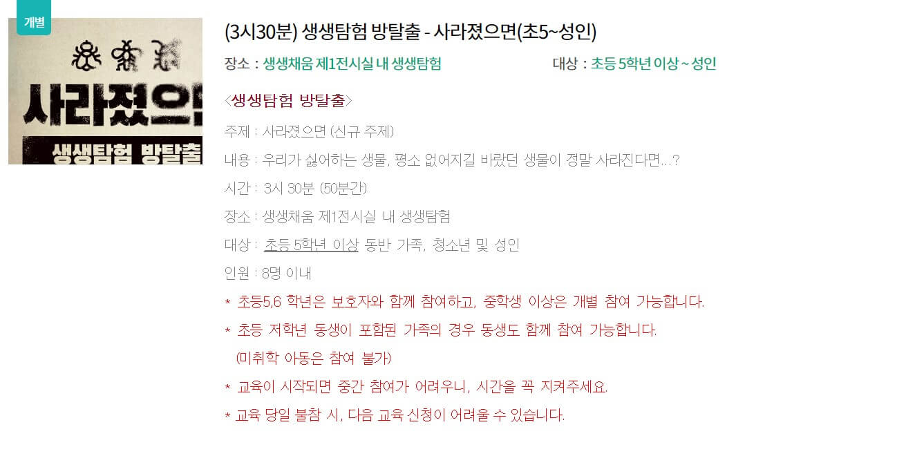 현재는 개인은 50분간 진행되는 방탈출 프로그램 체험 가능