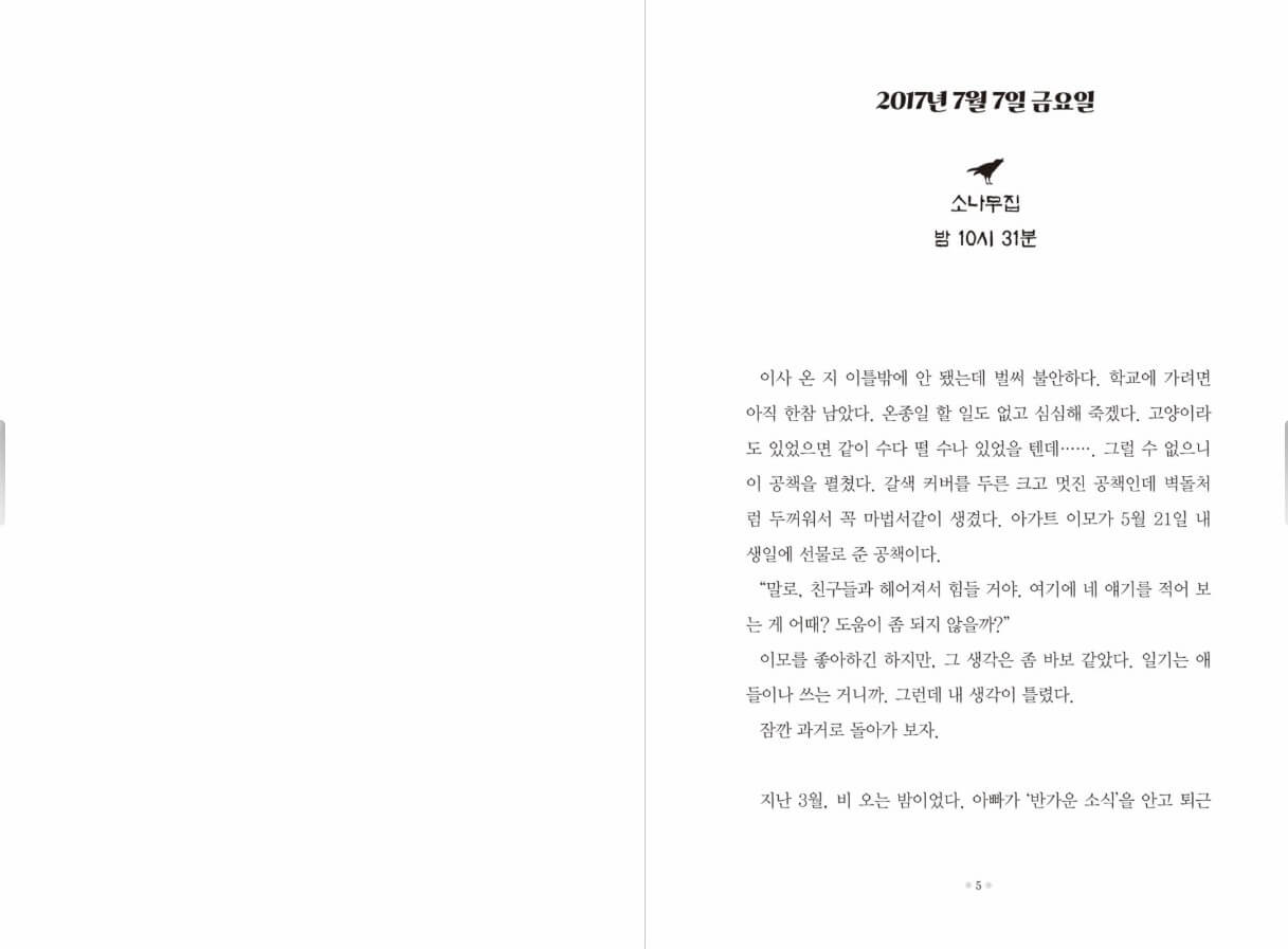 그 대신 일기장에 그려진 여섯 가지 날씨 그림으로만 표현되는 세계를 열어젖히기로 한다.