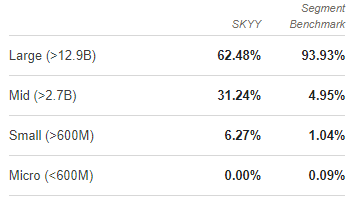 - 위에 설명한거처럼 SKYY는 다른 일반적인 테마 ETF 비중 산출 시에 시가총액 고려 방식을 사용하지 않는다. 이런 방식으로 인해 대형주에 쏠림이 BM 대비 낮은 것으로 보인다.