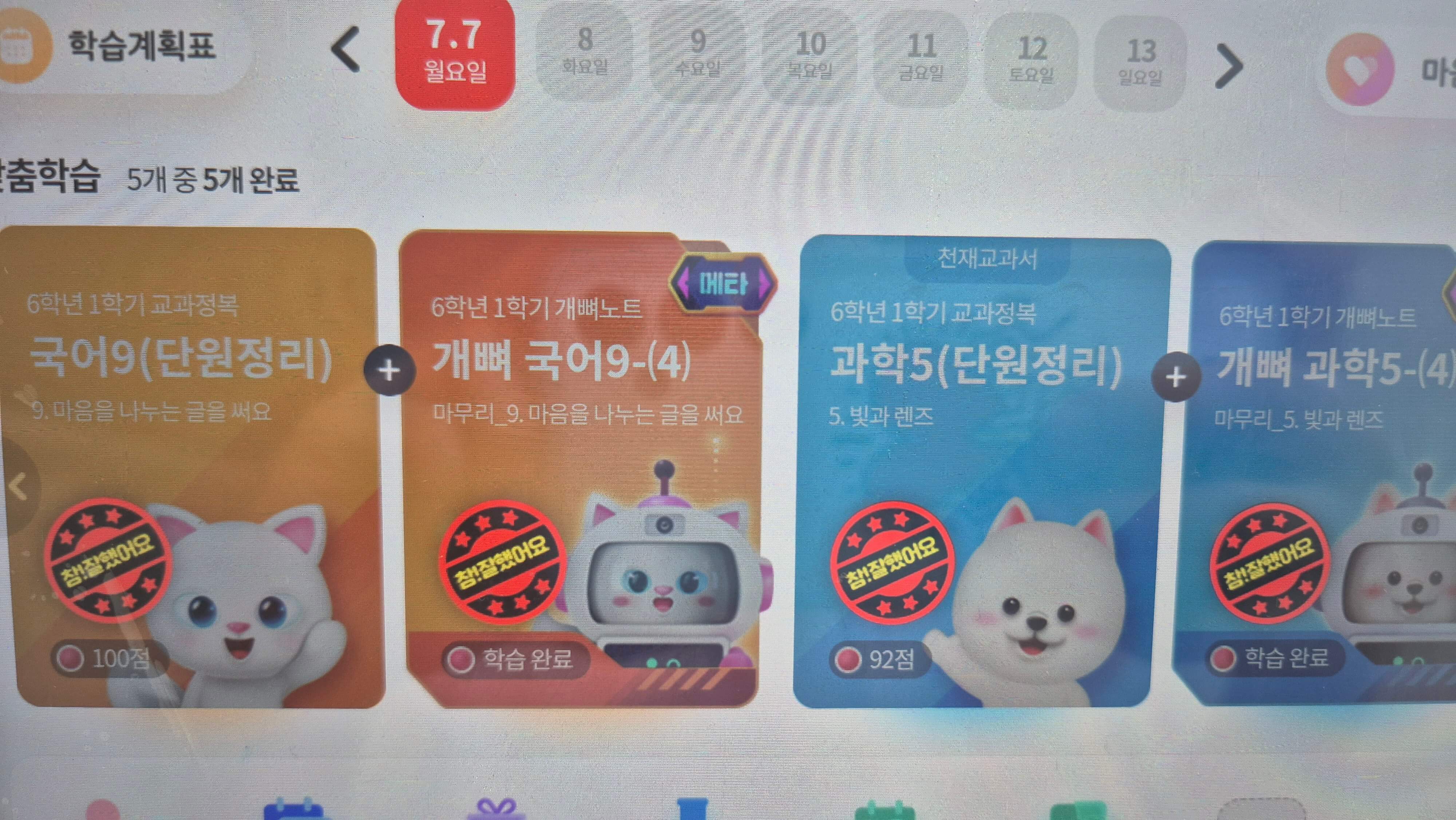 7월 둘째 주까지 1학기 전 과목을 총 복습하고, 그 다음 주부터는 2학기 예습에 들어갈 예정입니다.