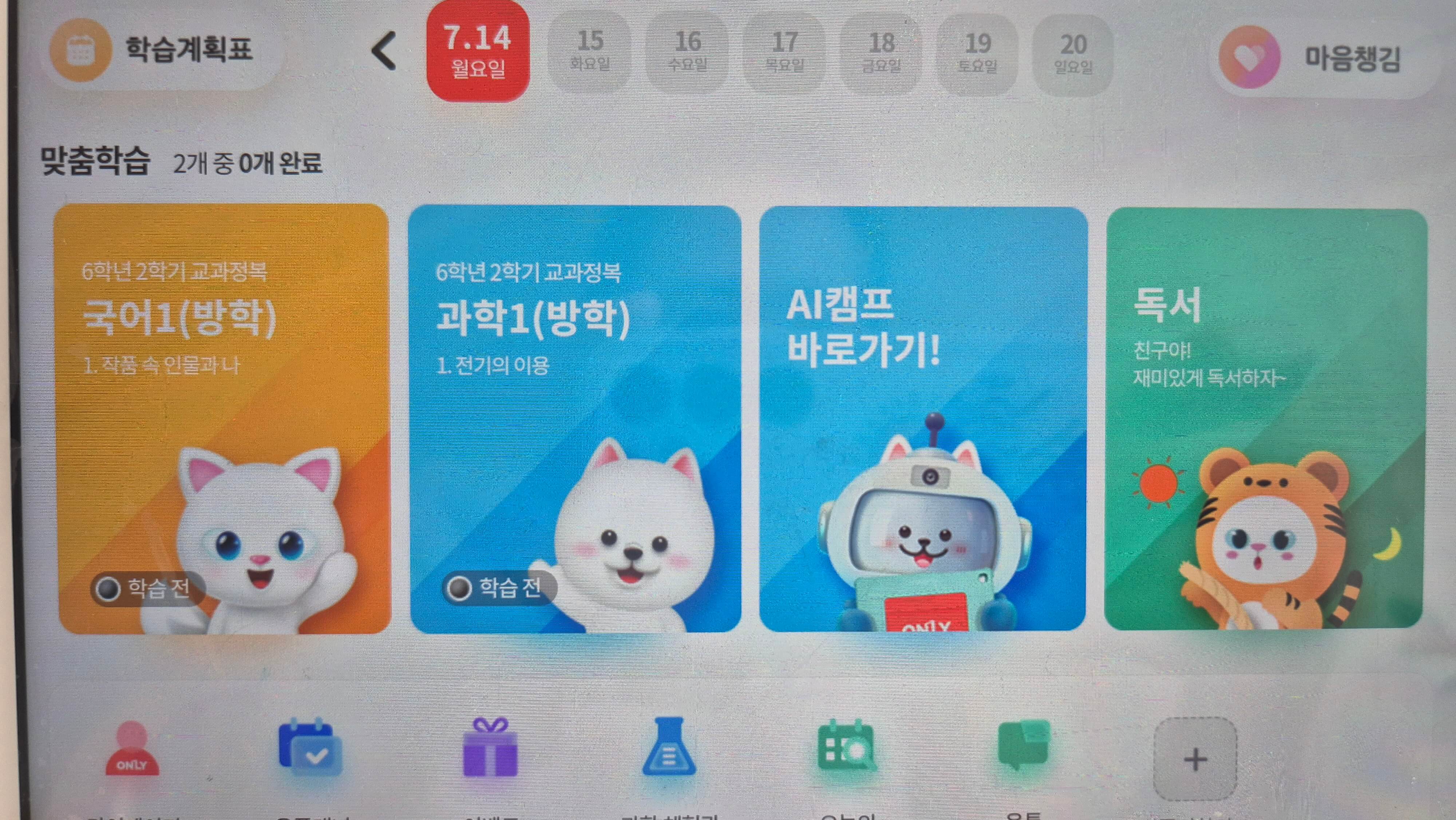 7월 중순부터는 2학기 교과 예습을 시작할 계획입니다.