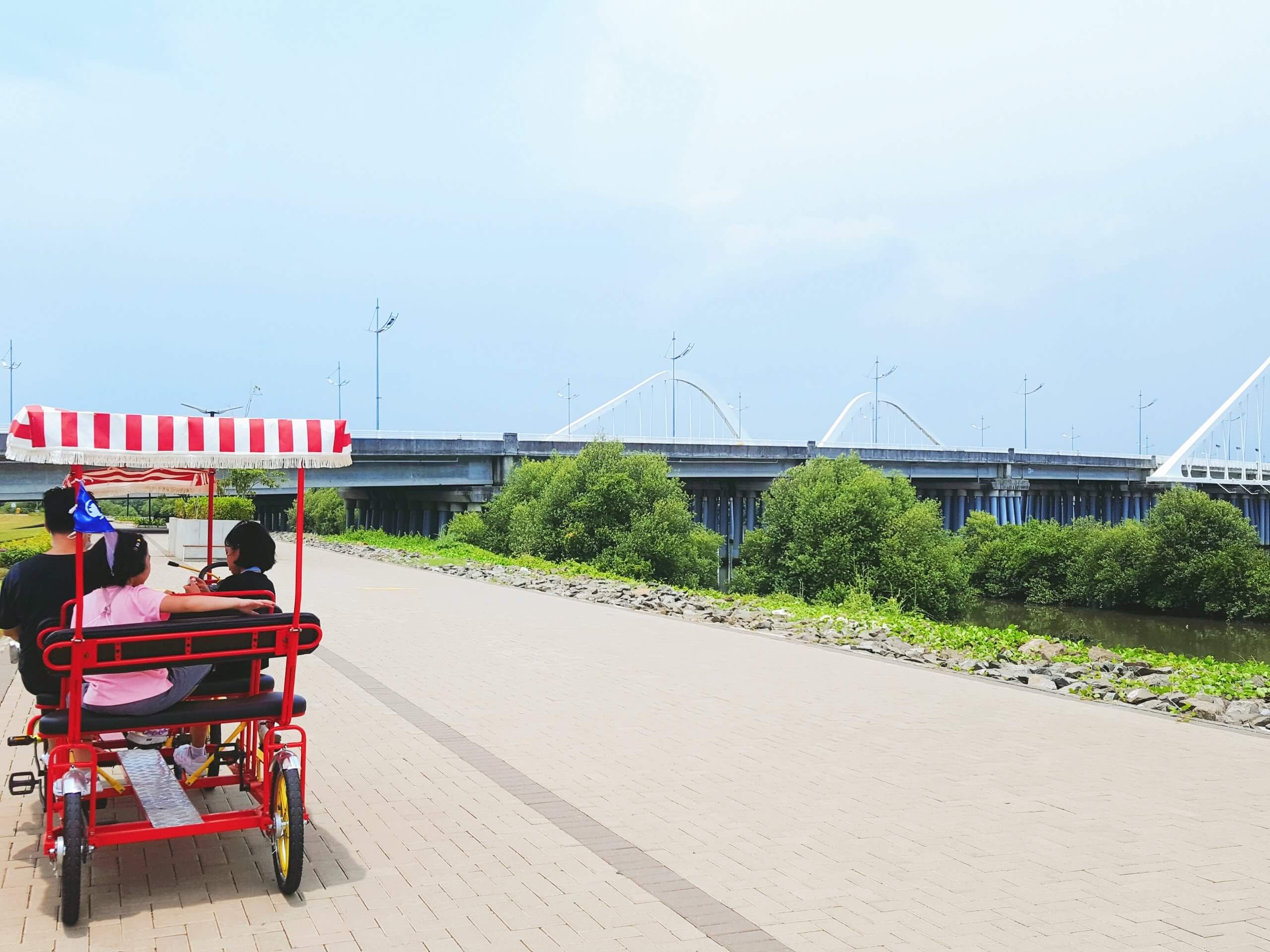 걸을때는 많이 더웠는데 그늘막이 있는 자전거를 타니 생각보다 시원했다.
