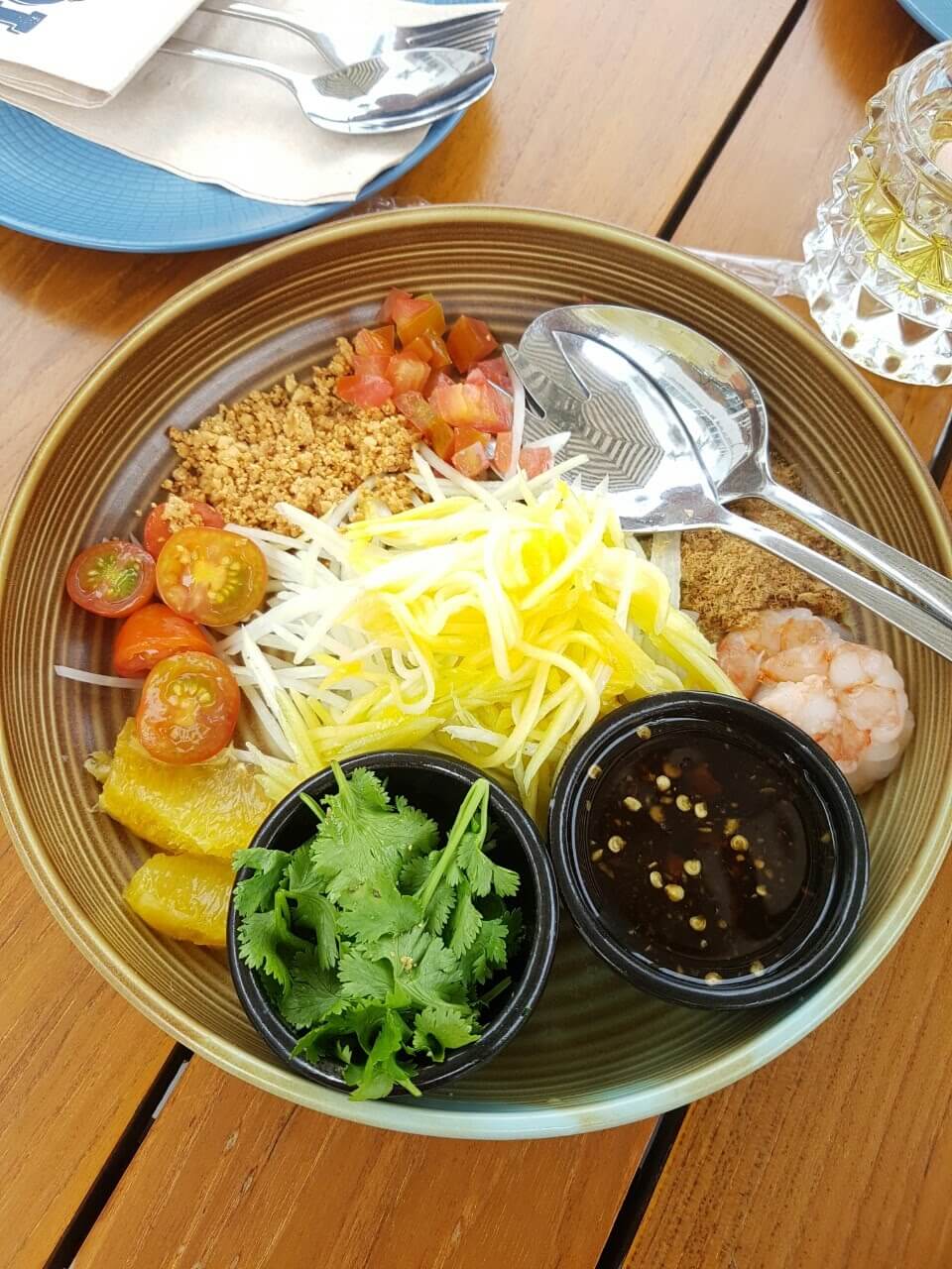 시원한 draft 맥주에 이곳에서 유명하다는 Salmon lodeh와 som tam을 주문해서 먹었는데