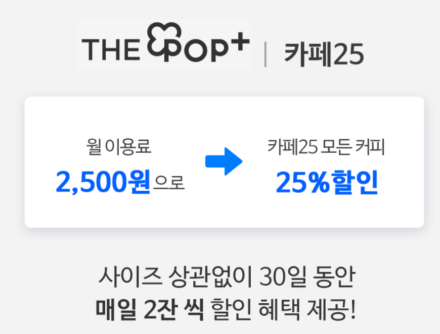 - 파리바게트 : 월 19,800 원으로 아메리카노 20잔을 마실 수 있다. (한 잔 990원 )