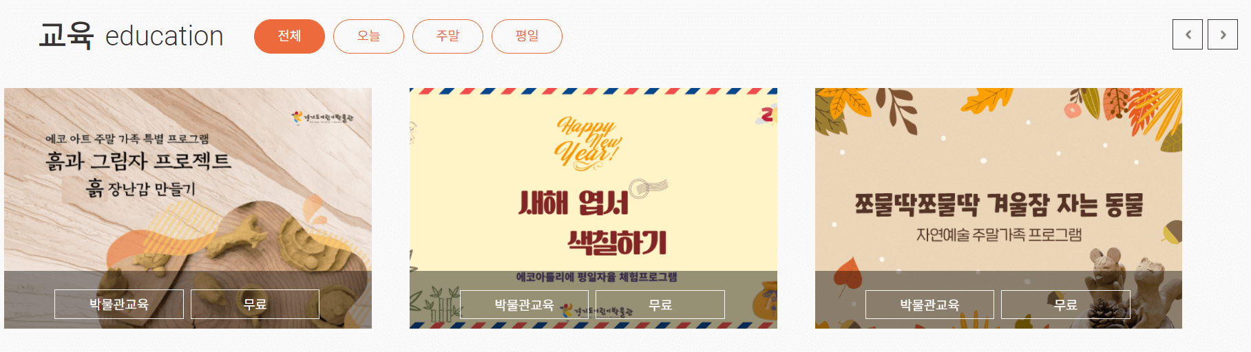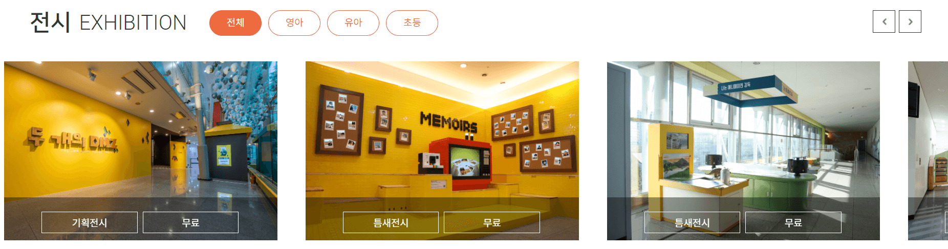 전시는 상설/기획/틈새 전시로 나뉘어 있으며