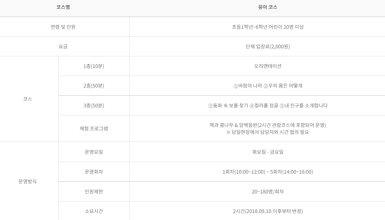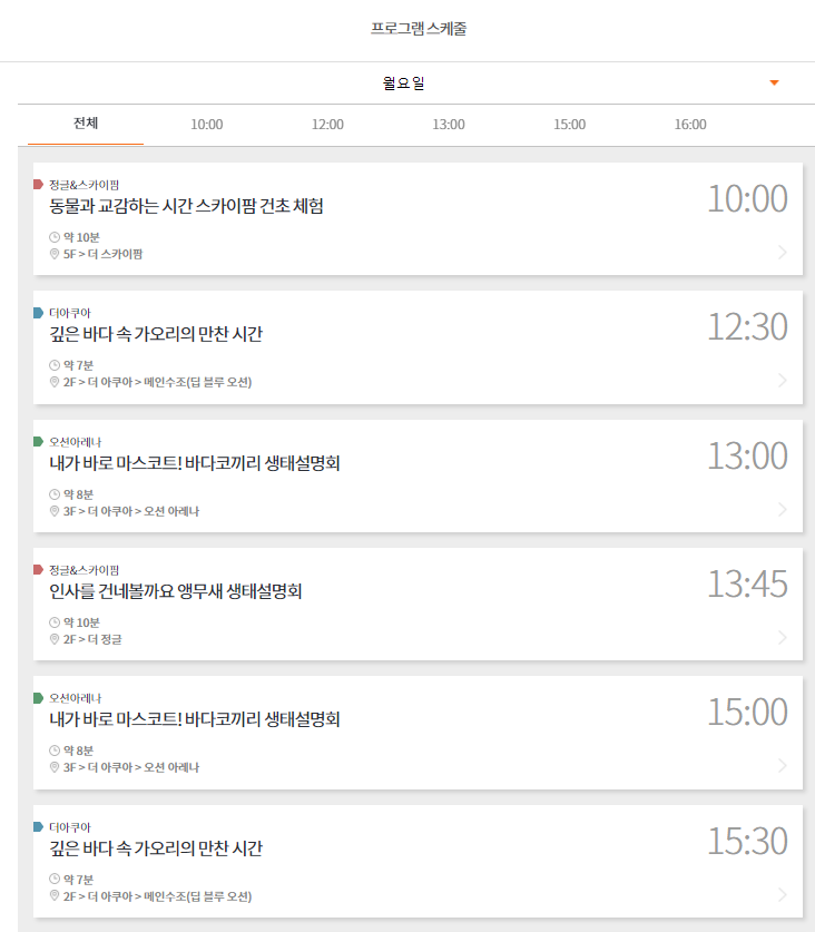 초등/유아/영아 관람 코스가 있어서