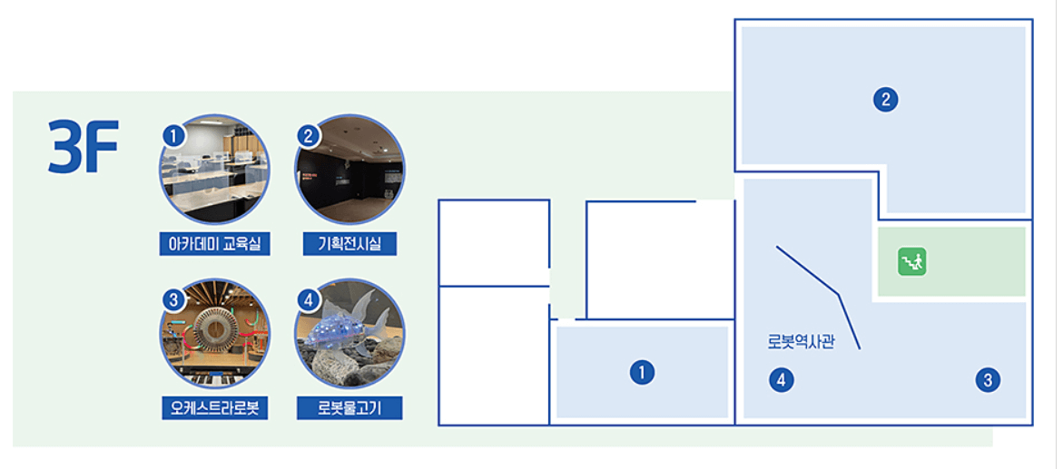3층에는 기획전시실, 로봇물고기 등이 있다