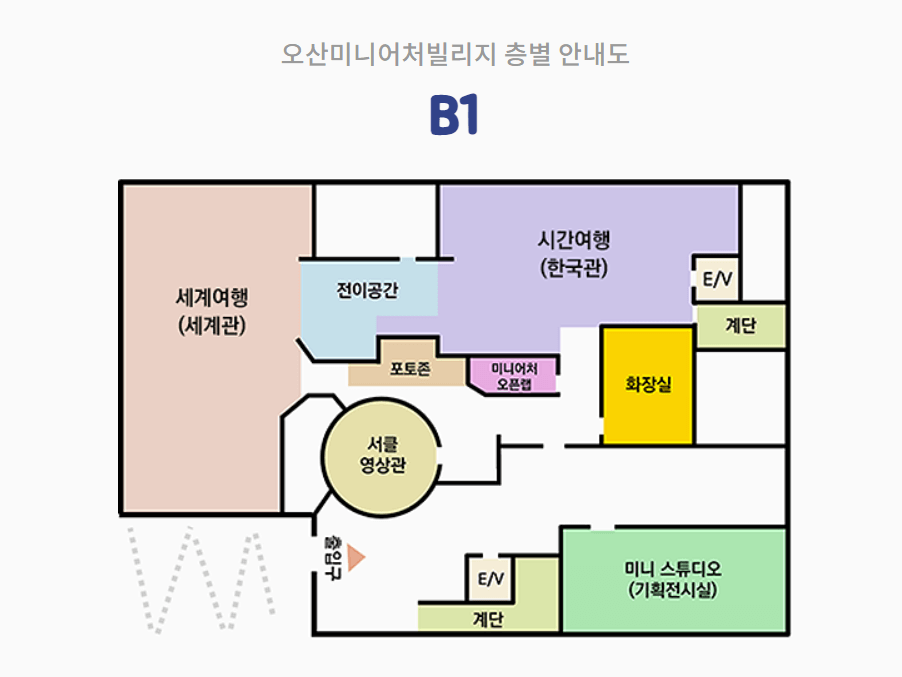 전시공간은 미니어처 환영 홀, 전시관, 360도 서클 영화관으로 나뉘어 있음