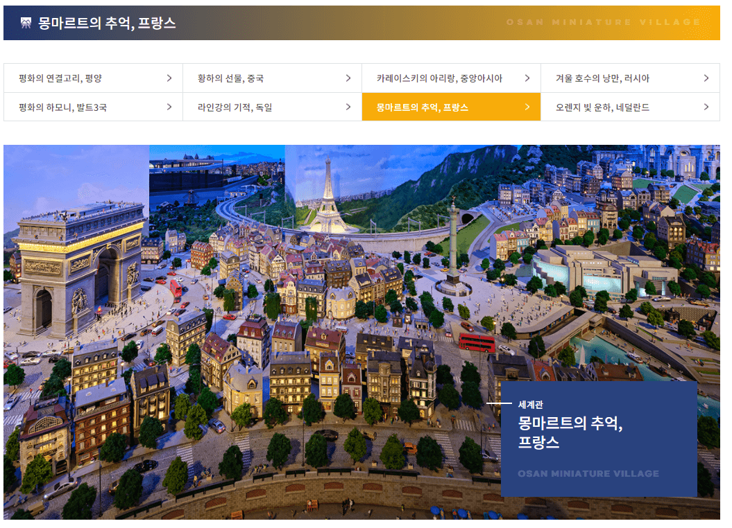 실내 미니어처 전시관으로 실제 크기의 1/87로 연출된 우리나라 및 세계 각국의 모습이 전시되어 있다