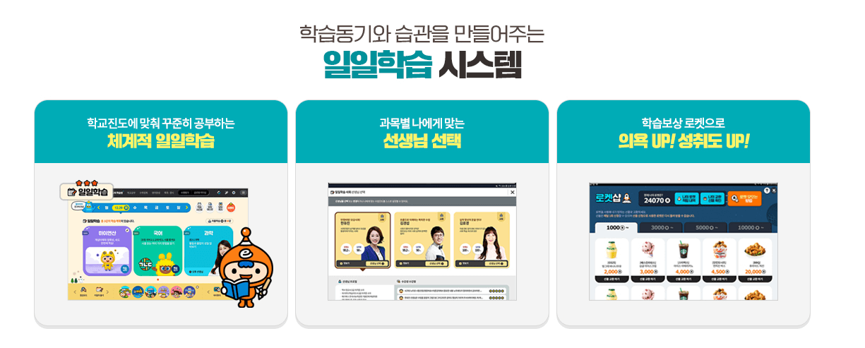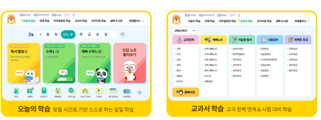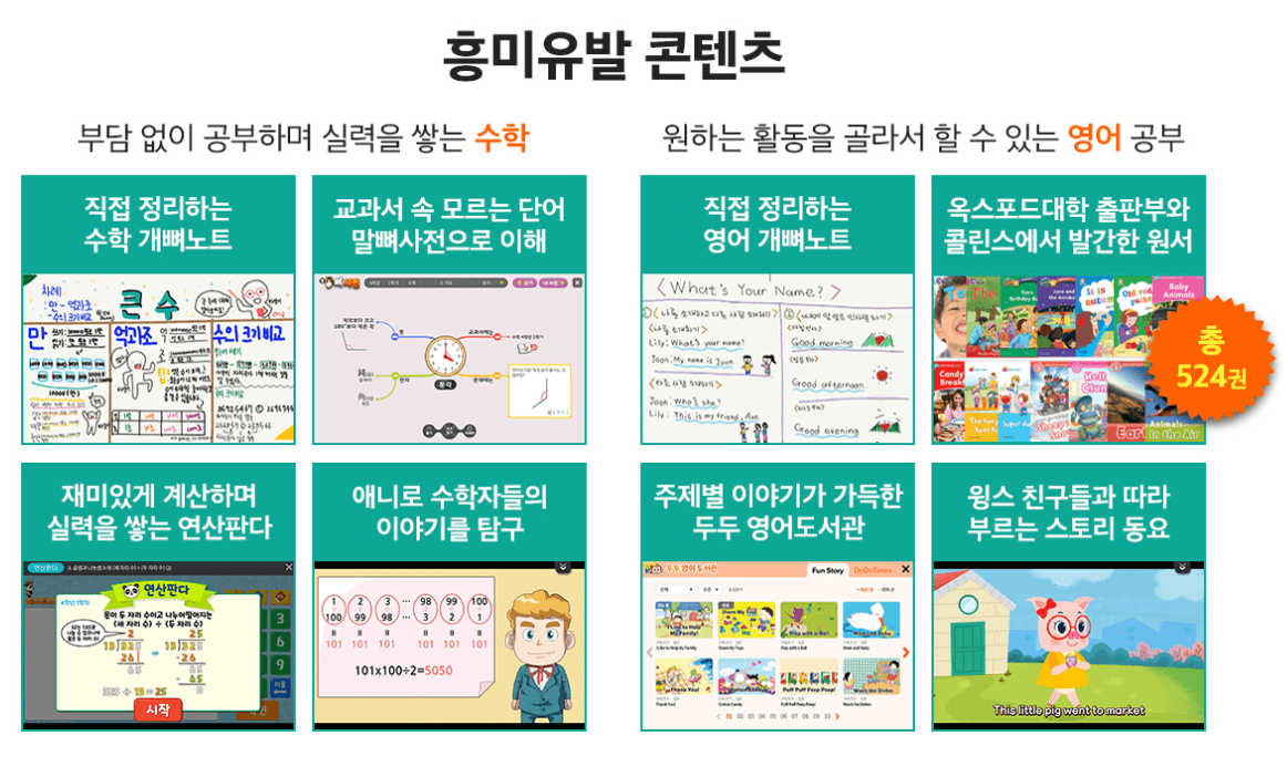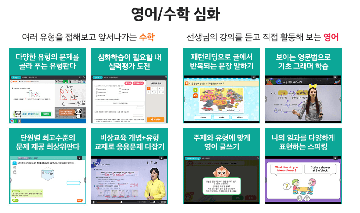 20년의 교육 노하우로 학교 공부에 최적화된 콘텐츠들이 강점