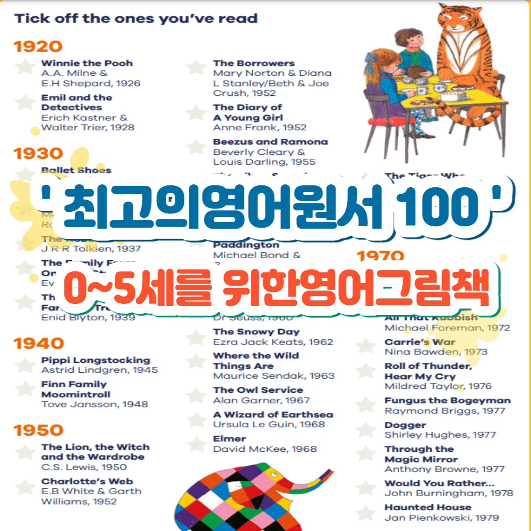 2021.09.30 - [일상/육아] - [지난 100년 동안 어린이를 위한 최고의 영어 원서 100권 ] 0~5세를 위한 읽기 자료 (1편) -by Book Trust