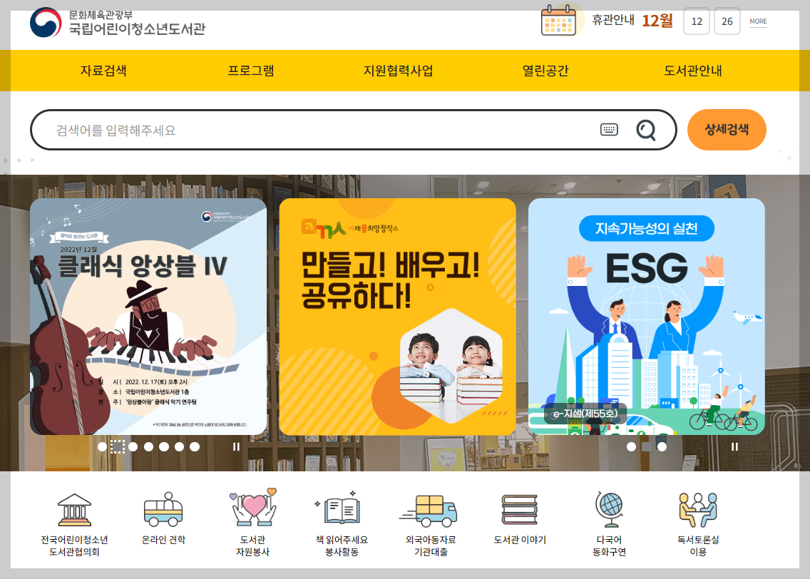 국립어린이청소년도서관에 오신 것을 환영합니다
