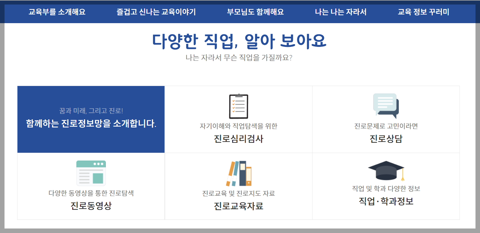 ① 나는나는자라서- 진로와 관련된 검사 및 다양한 직업에 대한 소개 및 대학교 학과에 대한 안내