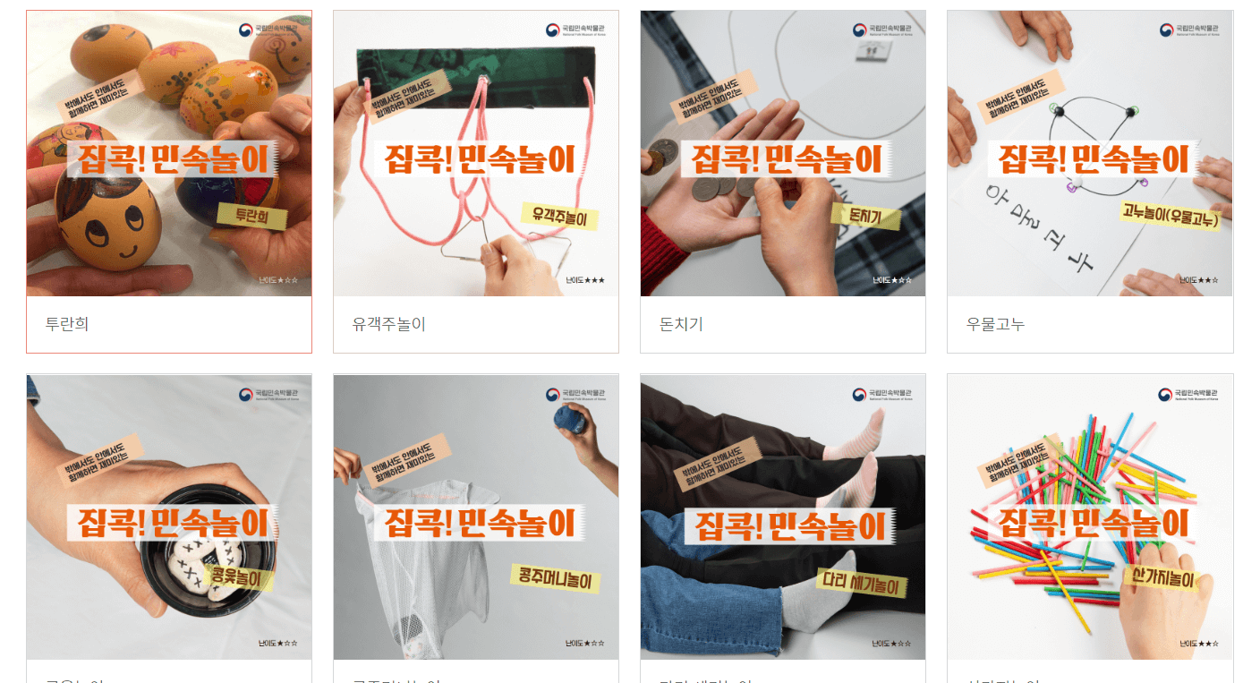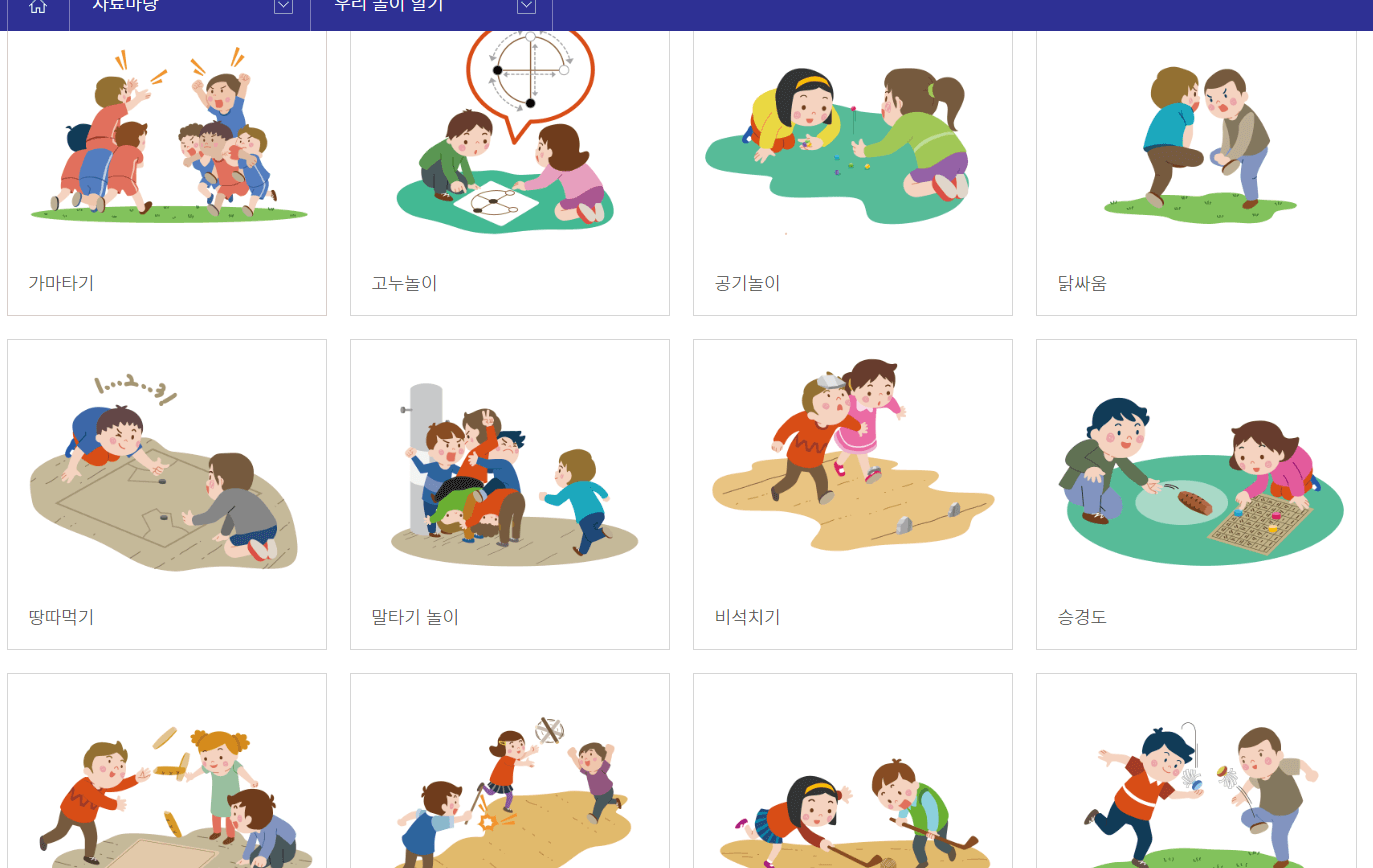 1. 자료마당 -> 우리 놀이 알기/ 집콕! 민속놀이