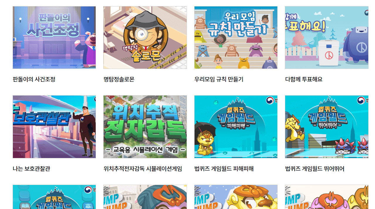 법체험 테마파크, 도서관, 게임, 생활법률, UCC, 만화