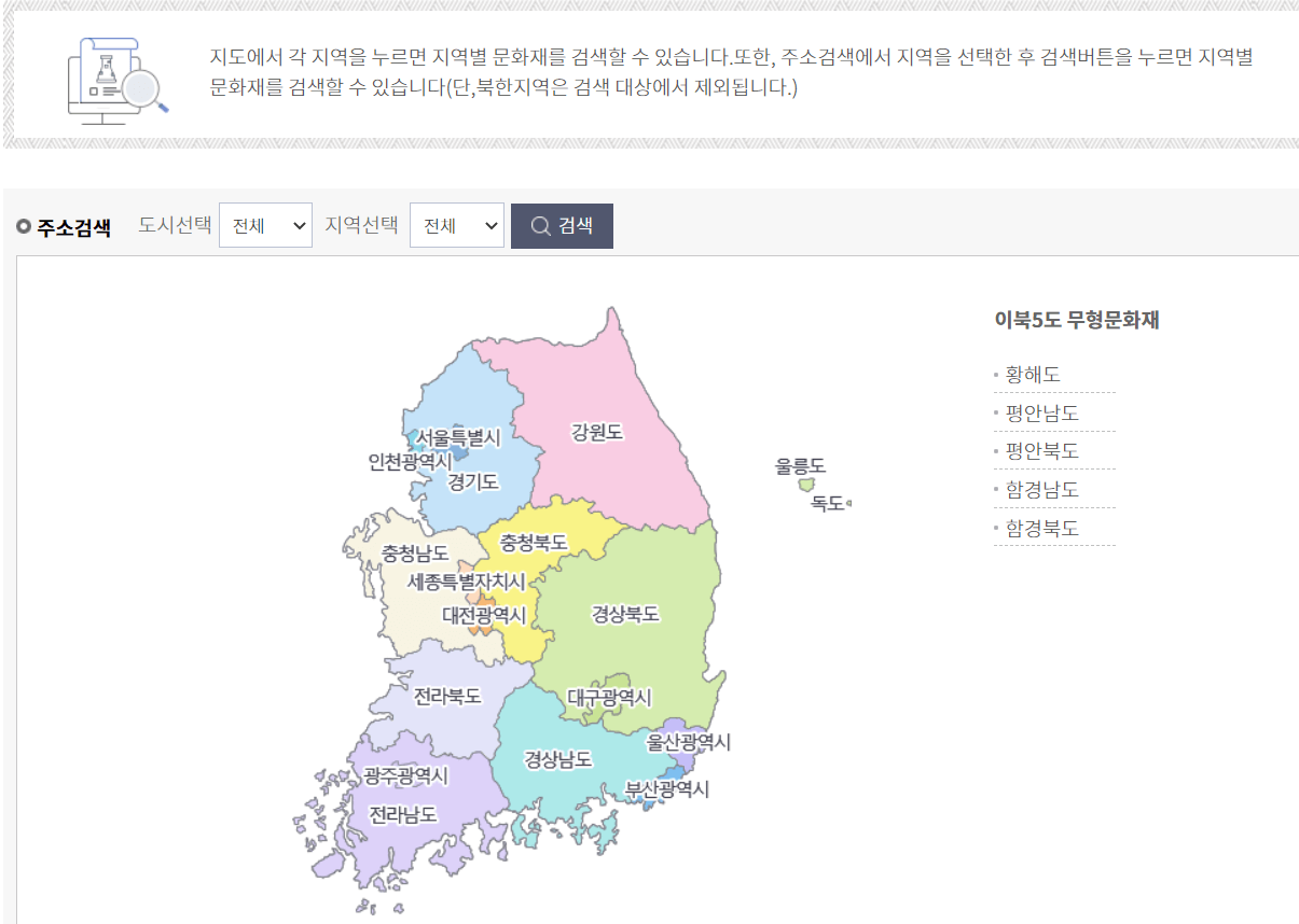 또한 원하는 지역을 검색해서 해당 지역의 문화재들은 어떤 것이 있는지도 찾아볼 수 있고