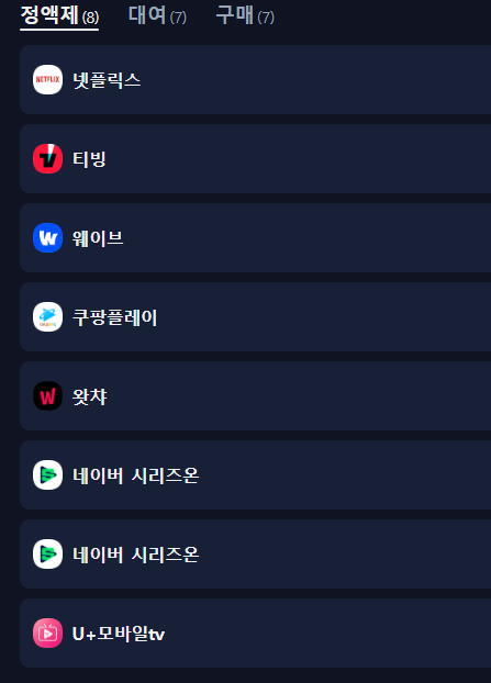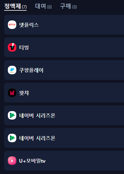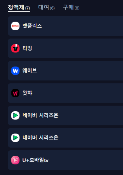 . 시청 가능한 ott 플랫폼 - 현재 시청가능한 플랫폼이 없음