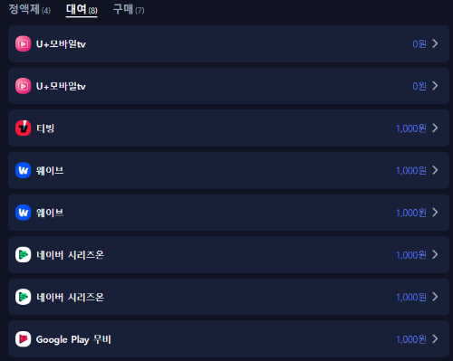 . 시청 가능한 ott 플랫폼 - 구매만 가능