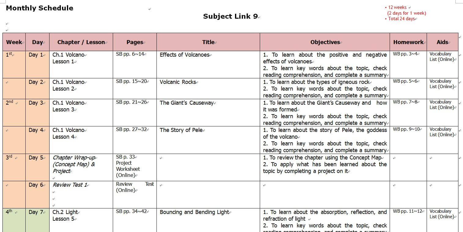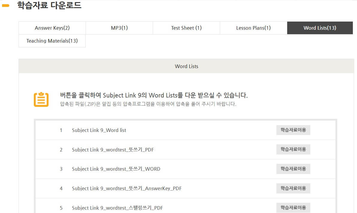 주별 학습계획표, 딕테이션자료, 단어장, 챕터별 테스트지 등