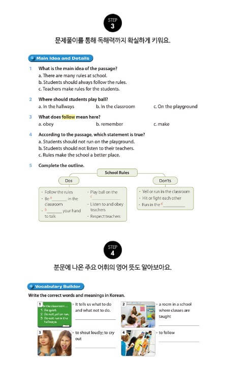 리딩과 함께 라이팅, 스피킹 연습을 함께 할 수 있는 교재
