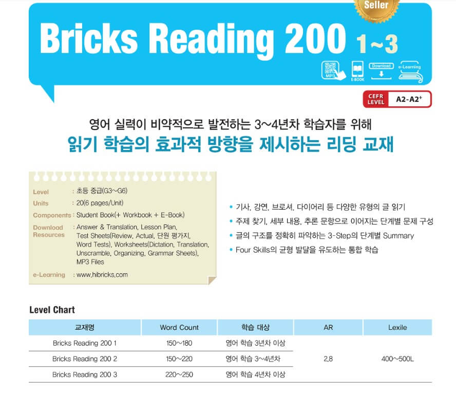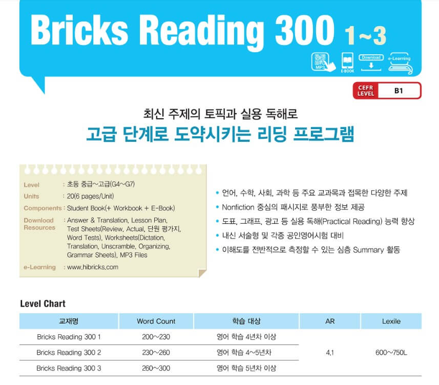 - 사회평론 출판사의 영어 교육 브랜드 Bricks(브릭스)에서 2006년 출간한 영어 리딩 교재이다