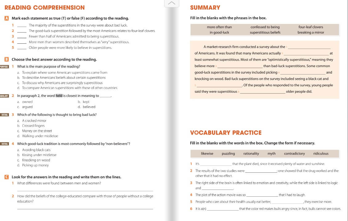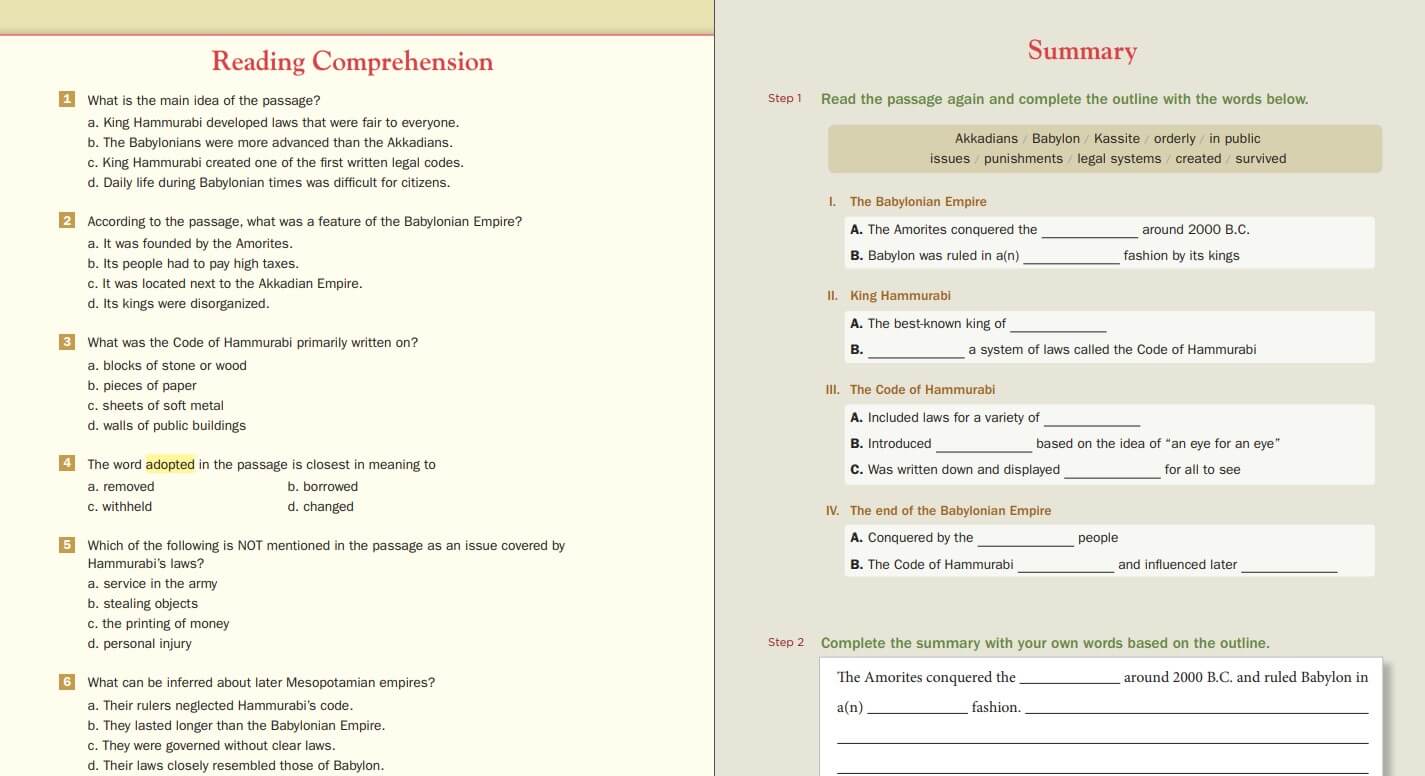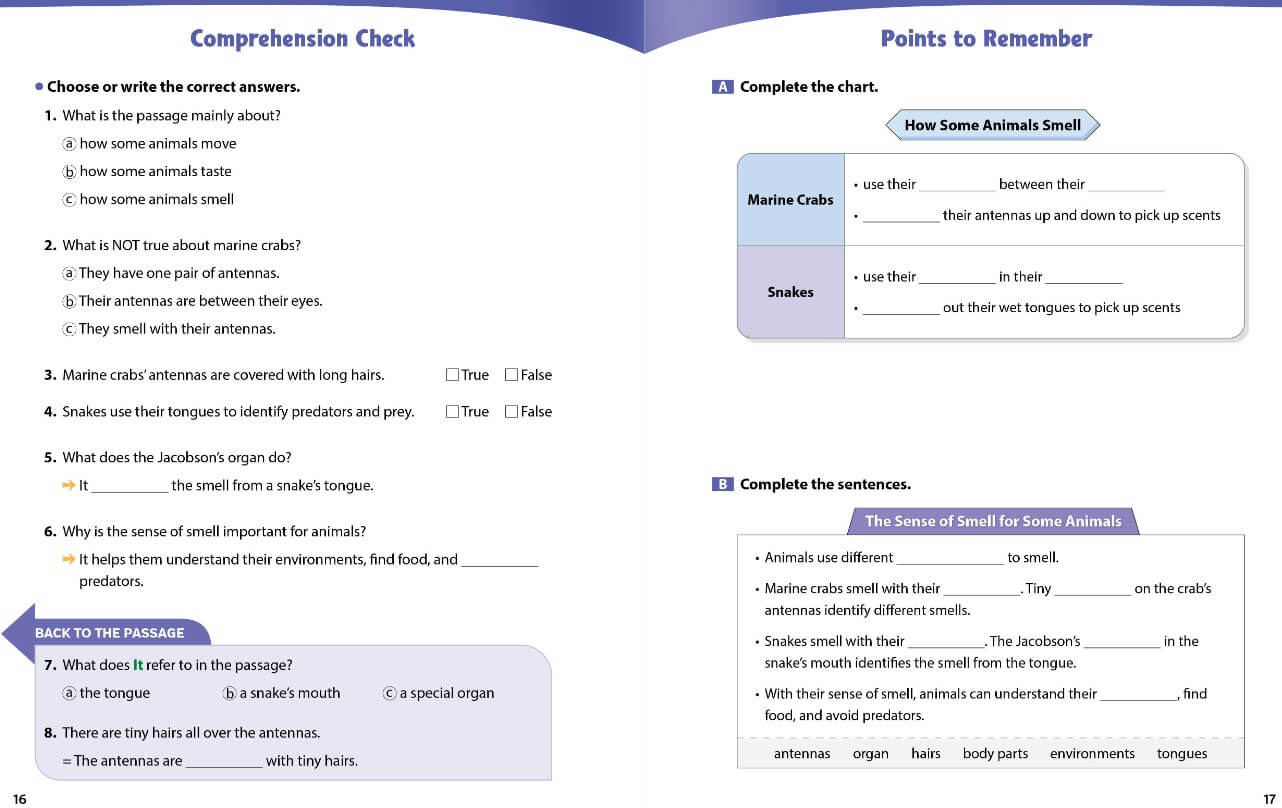 각 유닛마다 보충 리딩 자료를 제공하며, 관련 글쓰기나 말하기 질문이 함께 있음