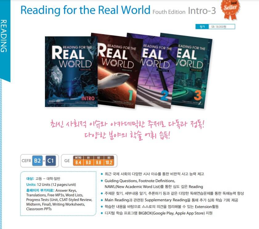 2. Reding for the Real World (리얼월드) : Lexile 800 ~ 1550L
